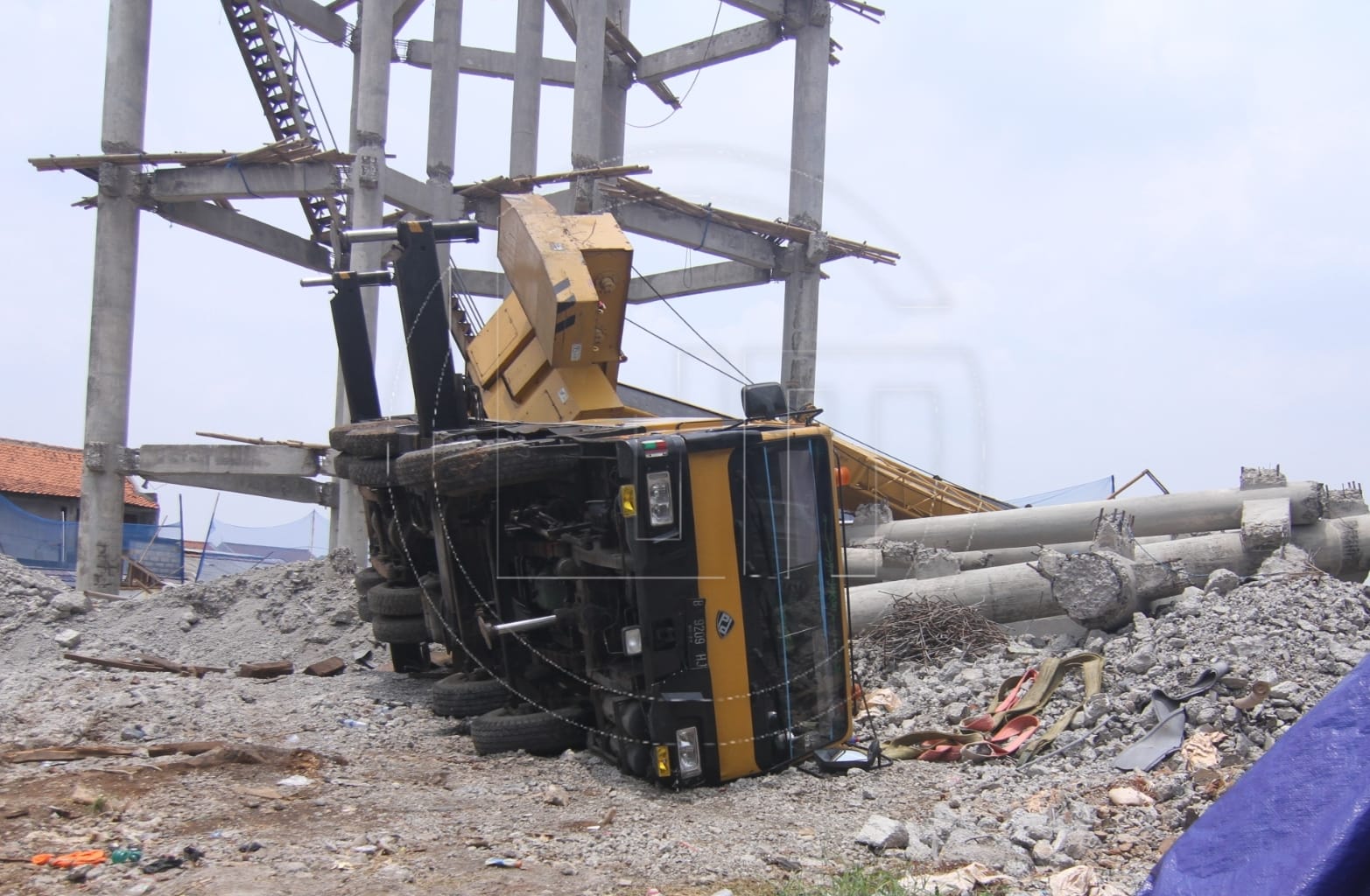 Brak! Crane Jatuh di Panmas Depok, Timpa Rumah Warga