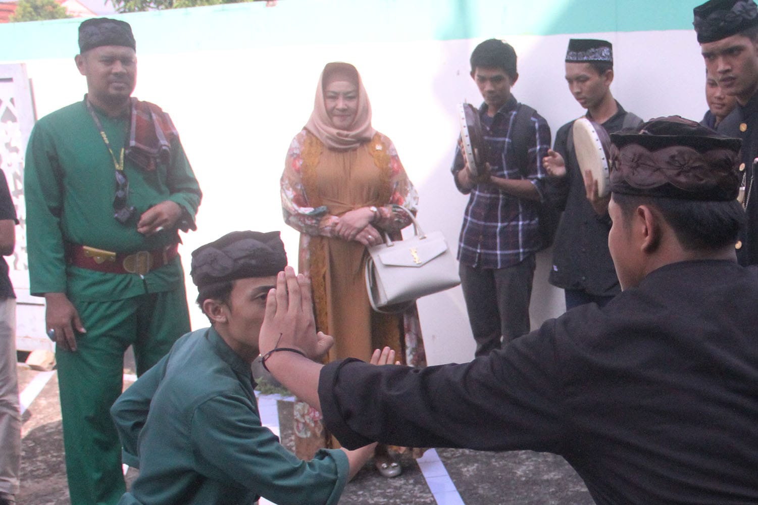 Anggota Komisi IX DPR RI Fraksi Partai Golkar Dra. Hj. Wenny Haryanto, SH disambut palang pintu Betawi yang tergabung dalam Sanggar Jalan Tangan Betawi Muda Depok.