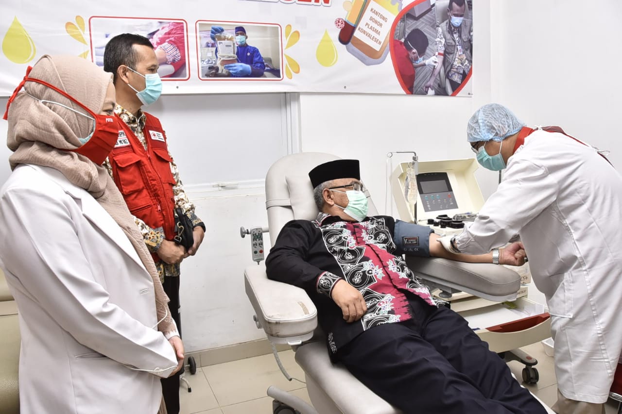 WartaDepok.com – Wali Kota Depok Mohammad Idris hari ini melakukan donor plasma konvalesen di kantor Palang Merah Indonesia (PMI) Kota Depok.