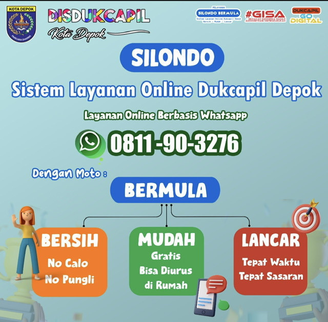 Lebih lanjut, ucapnya, untuk memudahkan warga mengisi serta memilih menu layanan kependudukan terdapat beberapa pilihan. Seperti melalui WhatsApp Silondo Bermula, website disdukcapil.go.id dan Depok Single Windows (DSW).