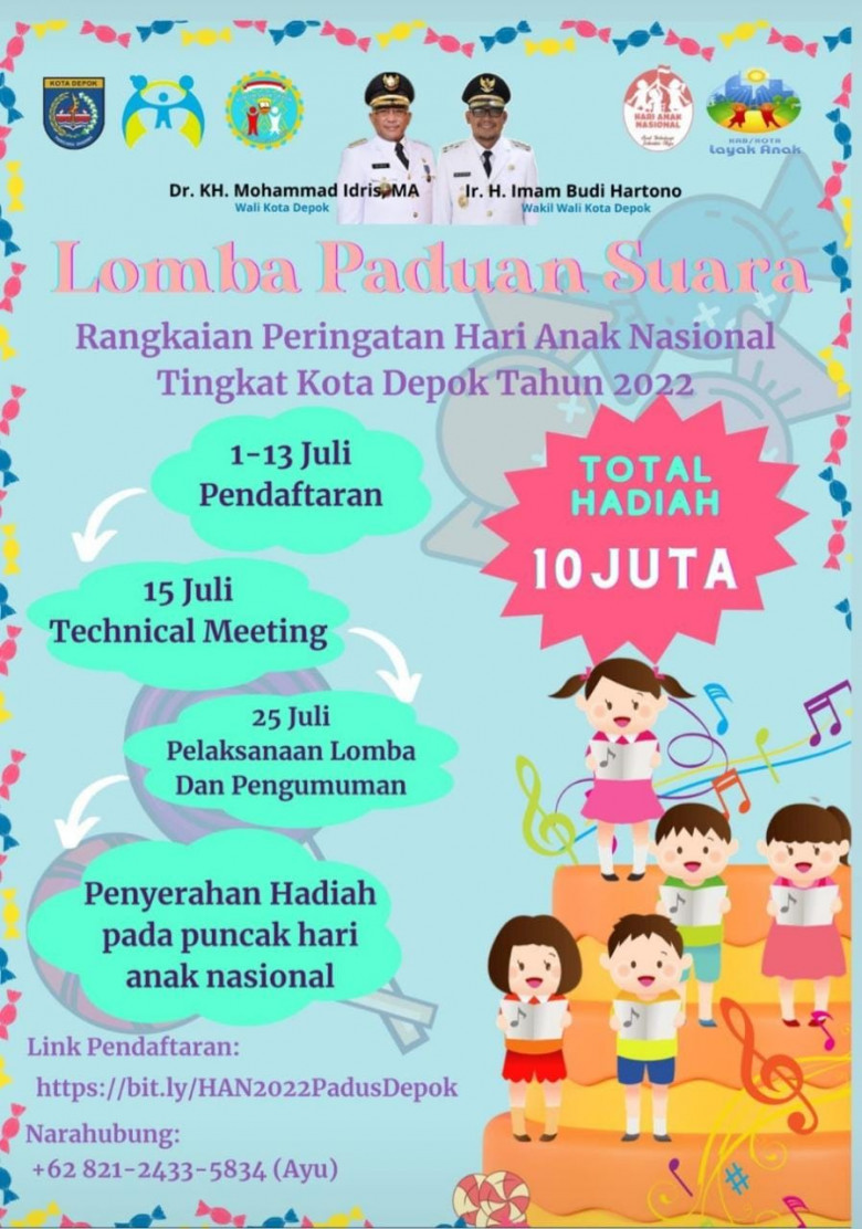 “Bagi pelajar yang berminat dalam mendaftar melalui link Lomba Paduan Suara : https://bit.ly/HAN2022PadusDepok,” katanya.