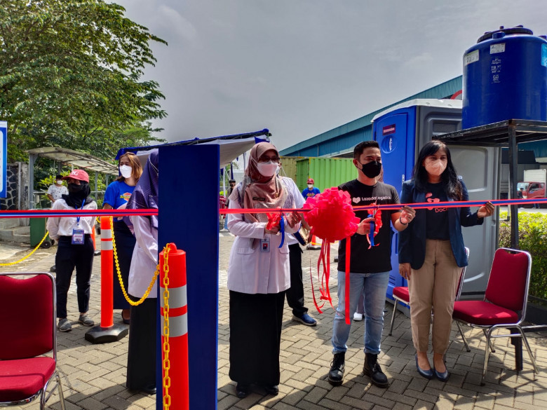 Kepala Dinkes Kota Depok, Mary Liziawati saat meresmikan Sentra Vaksinasi di Lazada Indonesia. (Foto: Istimewa)