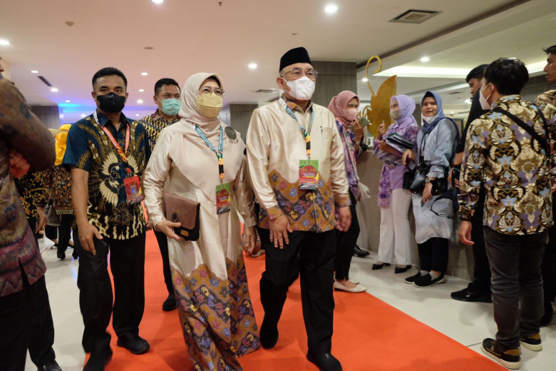 Wali Kota Depok, Mohammad Idris bersama Ketua TP-PKK Kota Depok, Elly Farida menghadiri malam gala dinner Apeksi XV di Hotel Truntum, Kota Padang, Minggu (07/08). (Foto: Diskominfo)