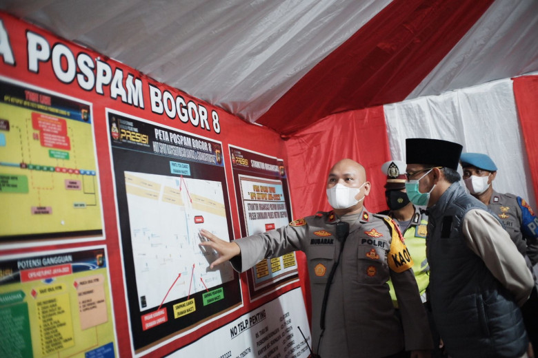 Wakil Wali Kota Depok, Imam Budi Hartono (IBH) melakukan monitoring pengamanan malam takbiran Idulfitri 1443 Hijriah di Pos Pelayanan Lebaran 2022 exit Tol Cijago Jalan Raya Bogor, Minggu (01/05/22). (Foto : Diskominfo)