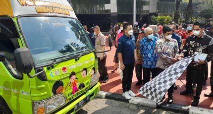 WartaDepok.com – Wakil Menteri Kesehatan RI dr. Dante Saksono Harbuwono melepaskan mobil edukasi dengue di gedung Kementerian Kesehatan RI, Selasa (5/7). Mobil jenis ini secara bertahap akan beroperasi di 100 titik di Indonesia.