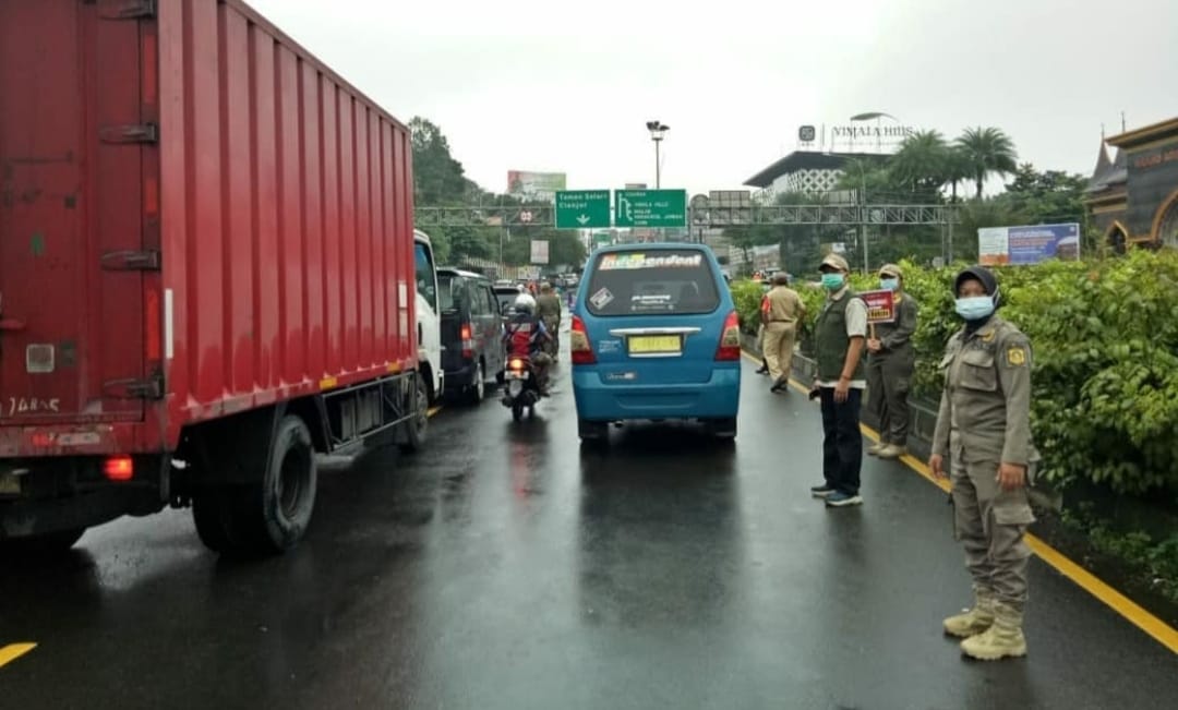 Dari keterangan Pemkab Bogor pada 7 Februari 2021 petugas Gabungan yang terdiri dari Satpol PP bersama TNI / Polri berjaga di Simpang Gadog.