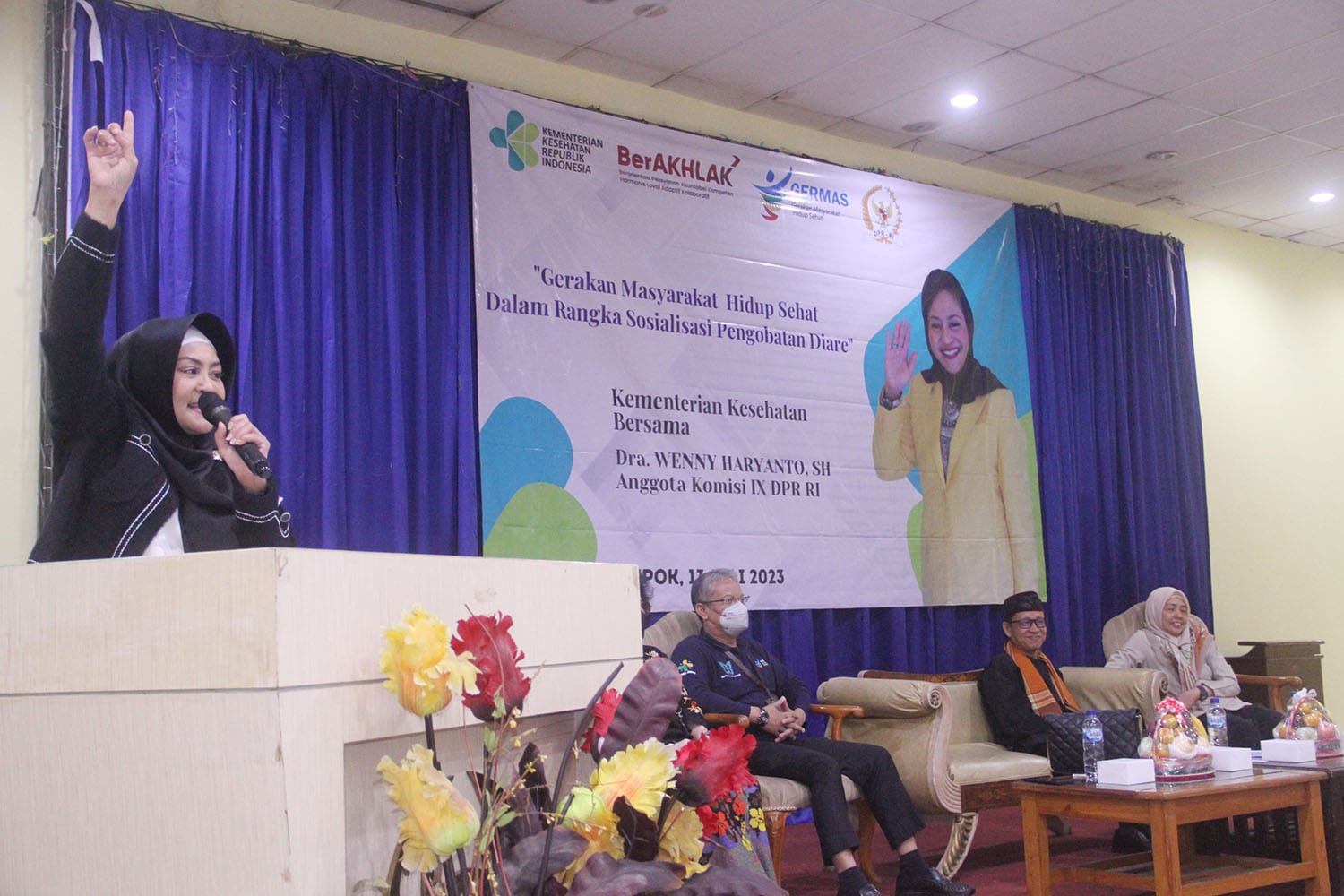 “Perubahan cuaca memicu timbulnya berbagai penyakit, diantaranya berpotensi menular seperti diare. Saat musim kemarau, di wilayah tertentu di Depok sulit air bersih, sehingga menggunakan air seadanya dan rentan terkena diare,” kata Wenny saat menjadi pembicara dalam kegiatan “Gerakan Masyarakat Hidup Sehat Dalam Rangka Sosialisasi Pengobatan Diare” bersama mitra kerja Kemenkes RI di Depok, Kamis (13/7/2023).