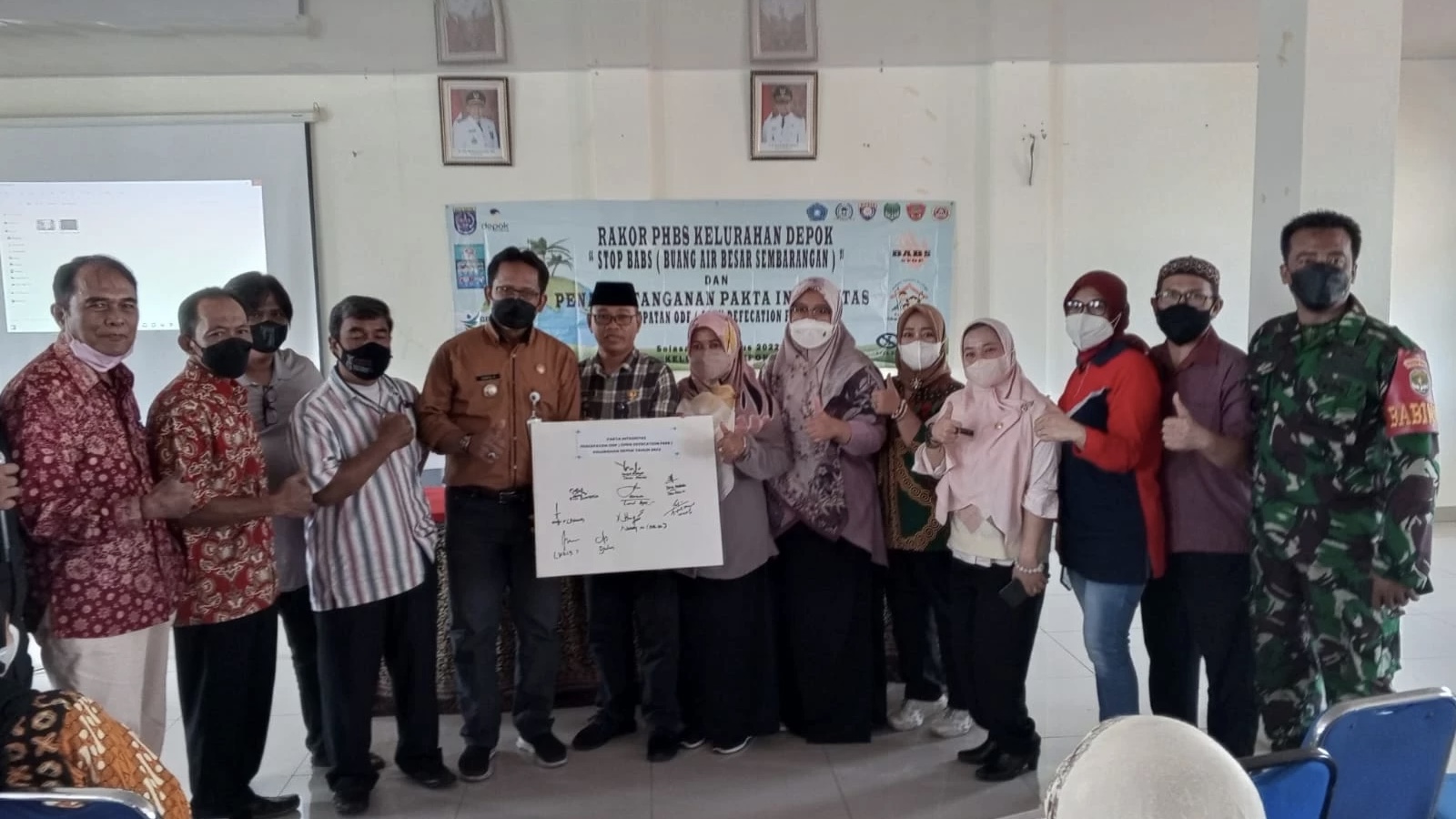 Lurah Depok, Herman menjelaskan, penandatanganan Pakta Integritas dilakukan oleh Camat Pancoran Mas, Lurah, Forum Komunikasi Kecamatan Sehat (FKKS) Kecamatan Pancoran Mas, Pokja Sehat Kelurahan Depok, Dinas Kesehatan, RT, RW, LPM, dan tokoh masyarakat. Semua elemen tersebut membubuhkan tandatangan pada spanduk putih, sebagai bukti komitmen menjalankan program penuntasan ODF.