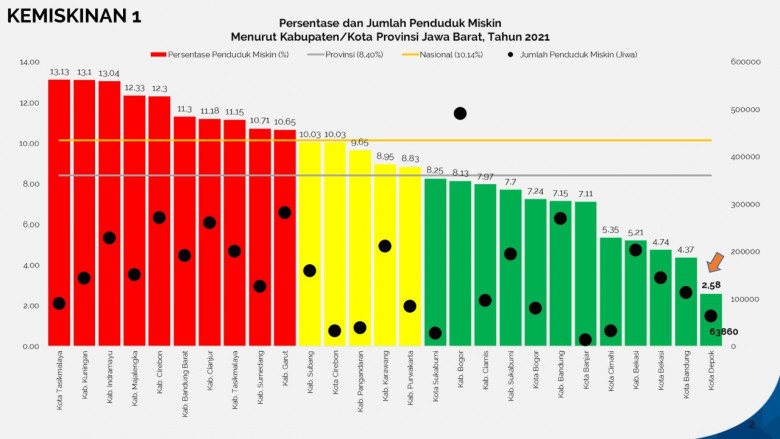 WartaDepok.com – Kota Depok mencatatkan angka kemiskinan terendah se-Jawa Barat pada tahun 2021 yaitu 2,58 persen. Jumlah ini juga jauh di bawah angka kemiskinan Provinsi Jawa Barat yakni 8,40 persen menurut data Badan Pusat Statistik (BPS) Provinsi Jawa Barat.