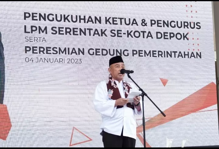WartaDepok.com – Wali Kota Depok, Mohammad Idris menghadiri acara pengukuhan Ketua dan Pengurus Lembaga Pemberdayaan Masyarakat (LPM) se-Kota Depok di Alun-alun Kota Depok, Rabu (04/01/23).
