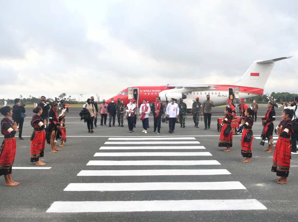 Presiden Jokowi dan Ibu Iriana tiba di Bandara Mathilda Batlayeri, Kepulauan Tanimbar, Maluku, Kamis (01/09/2022). (Foto: BPMI Setpres)