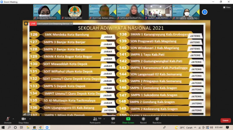 Adapun, kata Ety, lima sekolah yang masuk dalam Adiwiyata Nasional 2021 antara lain SDIT Mawaddah, SDIT Miftahul Ulum, SDIT Ummul Quro Depok, SMPN 5 Depok dan SMPIT Ummul Quro Depok. Dirinya berharap, prestasi ini bisa terus dipertahankan dan menular ke sekolah-sekolah lainnya sehingga predikat Sekolah Adiwiyata bisa bertambah setiap tahunnya.