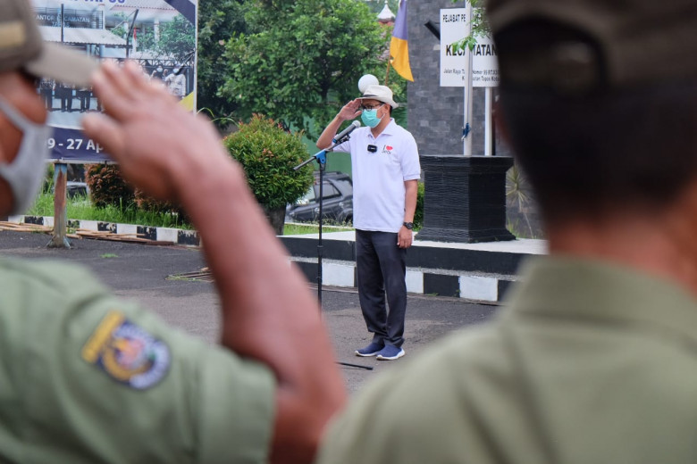 Wakil Wali Kota Depok, Imam Budi Hartono saat mendaji Pembina Apel Kebersihan di Kecamatan Tapos, Jumat (05/11/21). (Dok. Diskominfo).