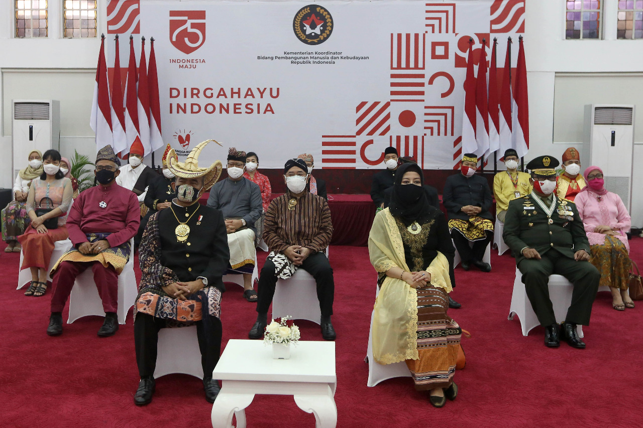 Sementara itu, rasa solidaritas dan kesetiakawanan nasional juga terlihat dari pemakaian baju-baju adat khas daerah di seluruh nusantara saat upacara peringatan HUT RI ke-75.