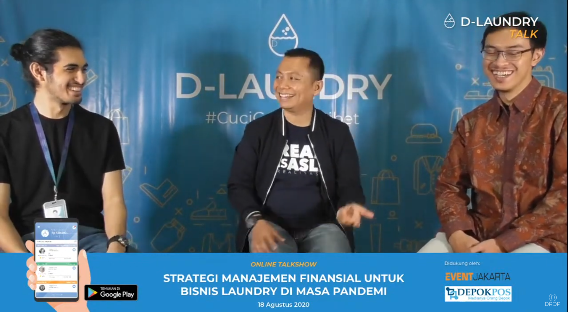 Untuk itu, D-Laundry mengajak Mitra D-Laundry dan rekan-rekan pengusaha laundry untuk berpartisipasi dalam acara Online Talkshow dengan tema D-Laundry Talk: “Strategi Manajemen Finansial Bisnis Laundry di Era Pandemi” pada Selasa, 18 Agustus 2020 yang disiarkan secara langsung melalui platform Youtube DROP.