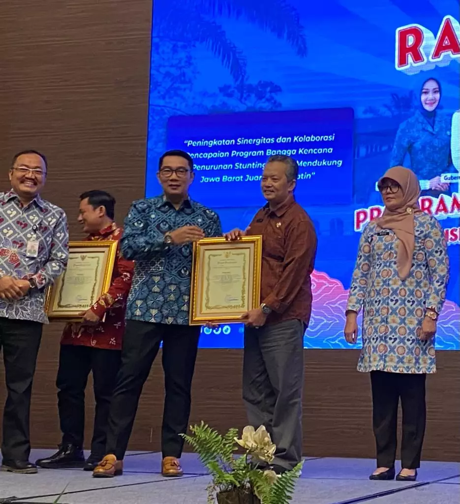 Kota Depok, Mohammad Idris menerima penghargaan dari Gubernur Jawa Barat (Jabar), Ridwan Kamil, atas peran, kontribusi dan keseriusannya melakukan upaya percepatan penurunan stunting.