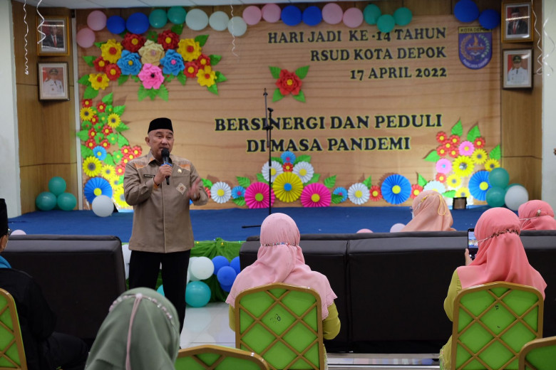 Wali Kota Depok, Mohammad Idris saat memberikan sambutan pada acara Hari Jadi ke-14 RSUD Kota Depok, Senin (18/04/22). (Foto: Diskominfo)