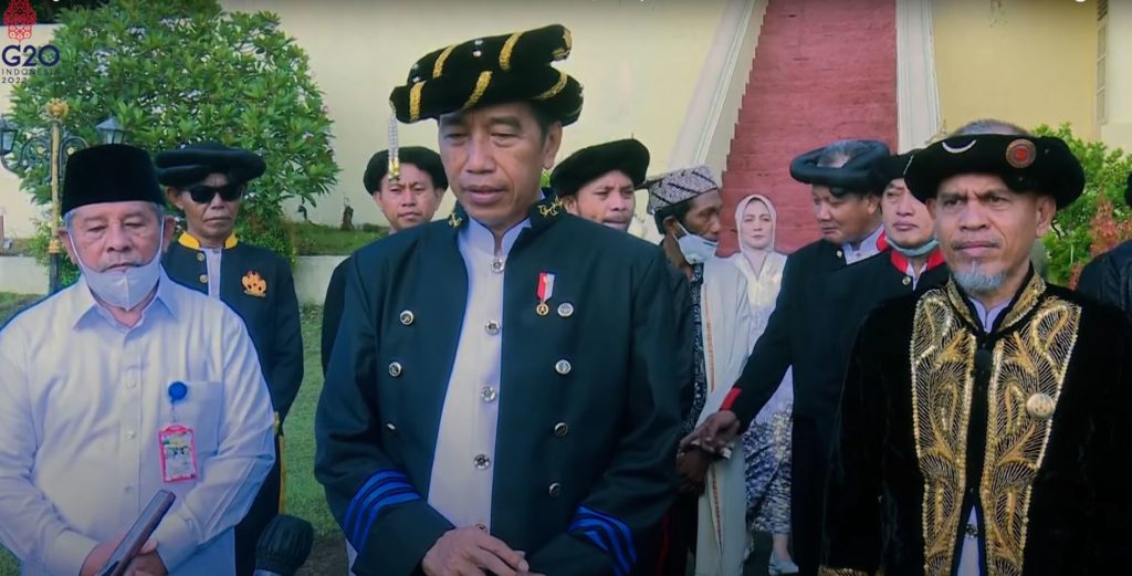 WartaDepok.com – Dalam kunjungan kerja ke Provinsi Maluku Utara, Presiden RI Joko Widodo (Jokowi) dianugerahi Gelar Kehormatan Adat Kesultanan Ternate dalam acara yang diselenggarakan di Kedaton Sultan Ternate, Kota Ternate, Rabu (28/09/2022).