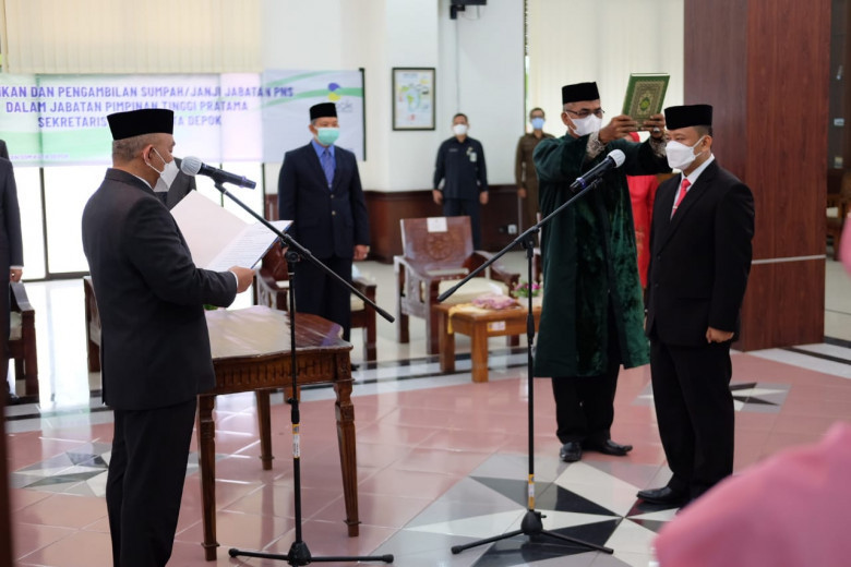 WartaDepok.com – Supian Suri resmi dilantik oleh Wali Kota Depok Mohammad Idris sebagai Sekretaris Daerah (Sekda) Kota Depok. Pelantikan dilakukan di Aula Teratai, Balai Kota dengan menerapkan protokol kesehatan secara ketat.