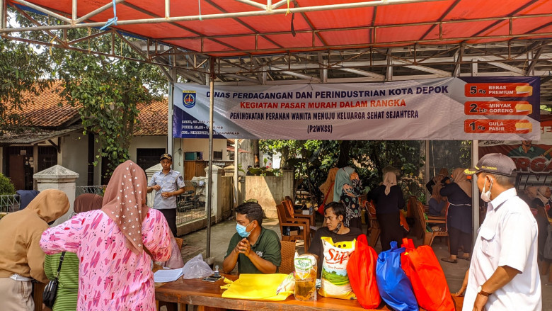 WartaDepok.com – Dinas Perdagangan dan Perindustrian (Disperdagin) Kota Depok menggelar Operasi Pasar Murah di lokasi Peningkatan Peranan Wanita menuju Keluarga Sehat dan Sejahtera (P2WKSS) RW 04 dan 05, Kelurahan Cinangka, Kecamatan Sawangan. Sebanyak 110 paket sembako dijual kepada warga prasejahtera dengan harga Rp. 52.000 per paket.