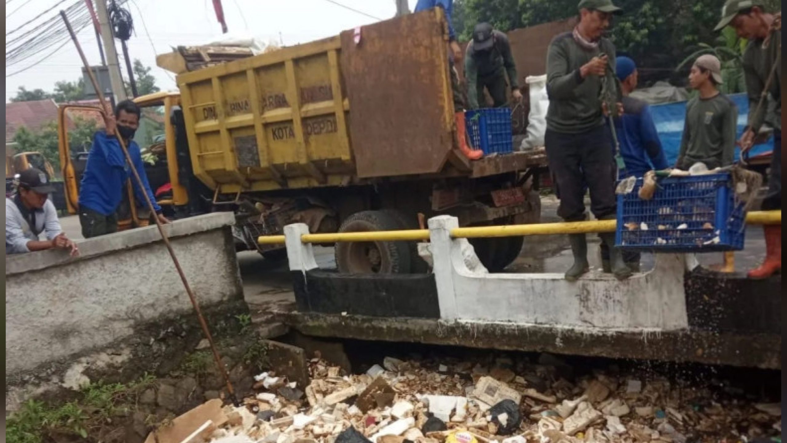 Dikatakannya, sampah harus segera diangkat agar tidak menimbulkan masalah baru seperti banjir atau luapan air akibat sumbatan sampah. Selain Satgas, pihaknya juga menerjunkan tiga unit dump truk untuk mengangkut sampah dan dibawa ke Tempat Penampungan Akhir (TPA) Cipayung.