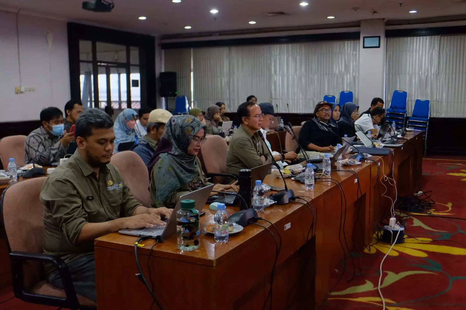 Tim Depok Creative City sedang menyempurnakan pengisian formulir aplikasi (dossier) UNESCO Creative Cities Network (UCCN) 2023 didampingi Panitia Seleksi Nasional dan Kemenparekraf, di Aula Edelweis Lantai 5, Balai Kota, Selasa (13/06/23). (Foto:  Diskominfo)