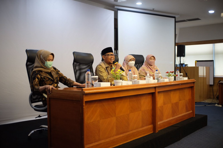 Wakil Wali Kota Depok, Imam Budi Hartono didampingi Kepala Dinas Sosial (Dinsos) Depok, Asloeah Madjri memberikan pengarahan kepada 63 korkel KDS di di aula Bank Jawa Barat (BJB) Kantor Cabang (KC) Depok, Senin (06/06/22). (Foto : Diskominfo).