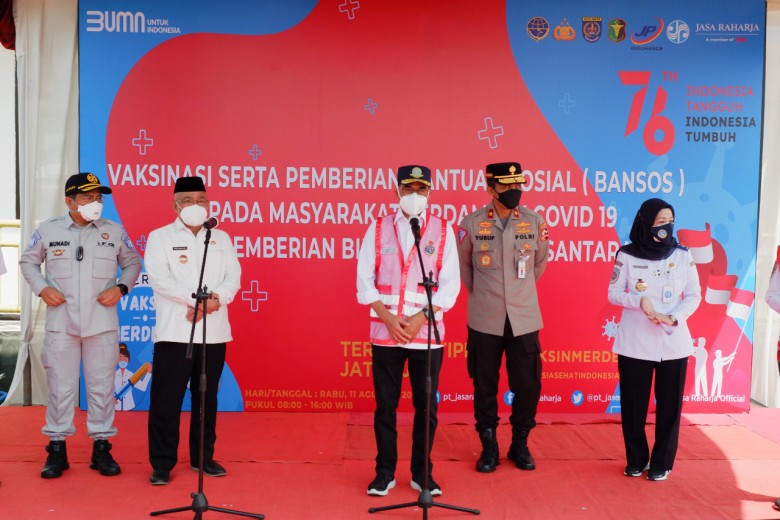 Pelaksanaan vaksinasi massal di Gerai Vaksin Merdeka tersebut terselenggarakan berkat kolaborasi Badan Pengelola Transportasi Jabodetabek (BPTJ), Polri dan PT. Jasa Raharja (Persero).