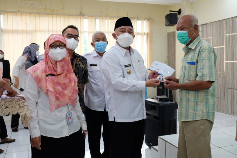 WartaDepok.com – Wali Kota Depok, Mohammad Idris menyerahkan secara simbolis kartu ATM bantuan sosial (bansos) Kartu Depok Sejahtera (KDS) ke masyarakat di aula Kantor Kecamatan Cimanggis, Rabu (02/02/22).