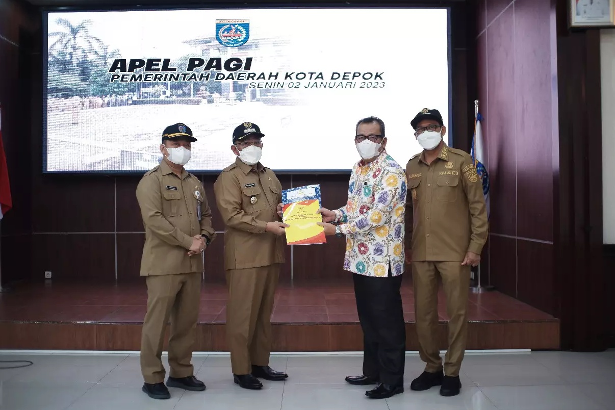 Penyerahan tersebut dilakukan secara simbolis kepada tiga orang ASN yang diadakan di Ruang Teratai, Balai Kota Depok, Senin (02/01/23).