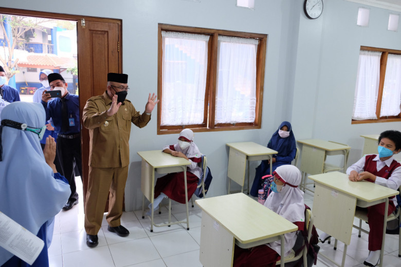 WartaDepok.com – Wali Kota Depok, Mohammad Idris didamping Camat Tapos, Abdul Mutolib meninjau penerapan protokol kesehatan (prokes) ke sejumlah sekolah yang berada di Kecamatan Tapos. Peninjauan tersebut dilakukan pada hari pertama Pembelajaran Tatap Muka Terbatas (PTMT) pada Senin, (04/10/21).