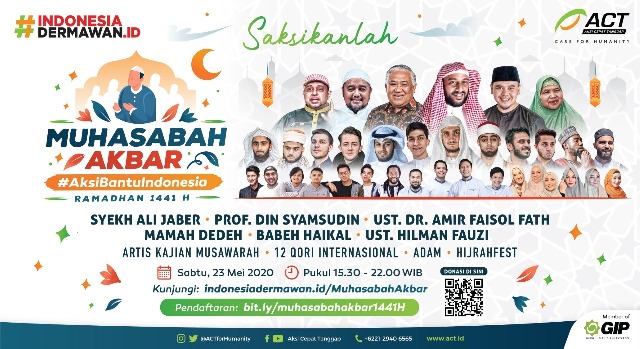 Aksi Cepat Tanggap (ACT) mengelar acara Muhasabah Akbar dengan tetap memperhatikan kaidah pembatasan jarak sosial namun diharapkan tetap semarak dan syahdu. ACT mengajak masyarakat untuk dapat menyaksikan pada Sabtu (23/5) nanti, berlangsung secara daring mulai pukul 16.00 WIB hingga 22.00 WIB.