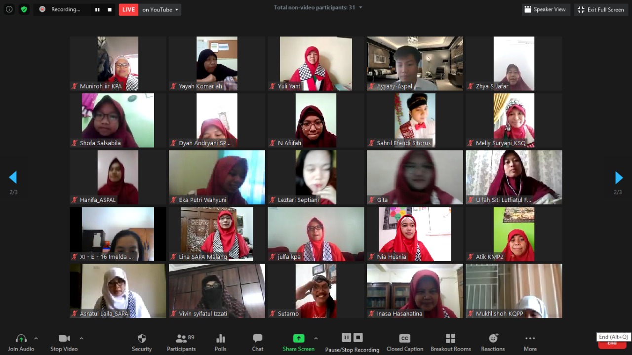 Di akhir sesi, pembawa acara mengumumkan pemenang-pemenang lomba yang diikuti oleh lebih dari 500 orang dalam 6 kategori lomba, yaitu lomba cerdas cermat, lomba puisi, lomba tilawah, lomba podcast berkisah, lomba tutorial kafiyeh, serta lomba outfit of the day.