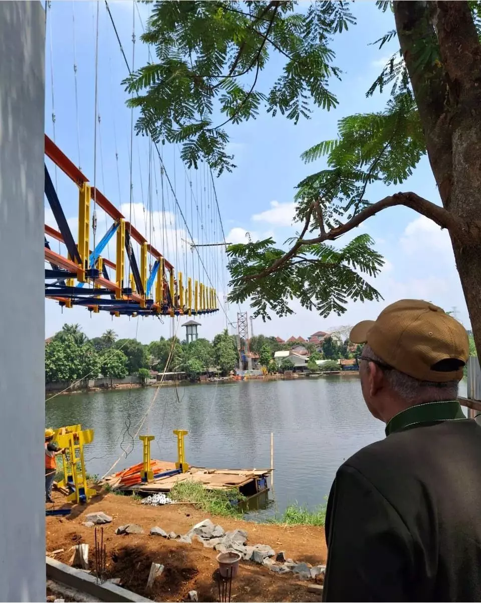Kali ini, ia ingin melihat progres pembangunan jembatan gantung di Taman Alun-alun dan Hutan Kota Depok.