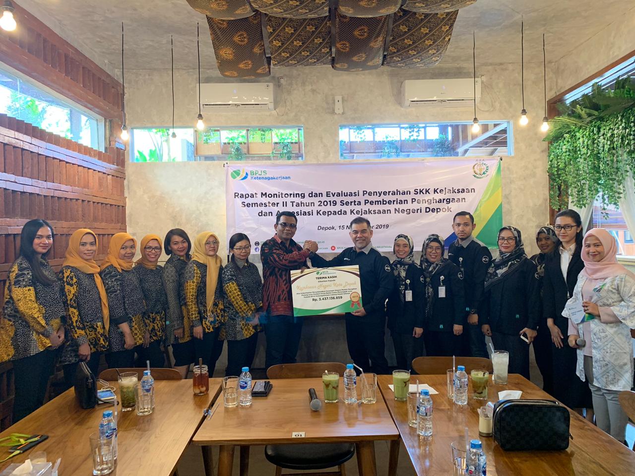 WartaDepok. com – Badan Penyelengara Jaminan Sosial Ketenagakerjaan (BPJAMSOSTEK) Depok, melakukan acara pemberian penghargaan kepada Kejaksaan Negeri (Kejari) Depok, Jawa Barat.