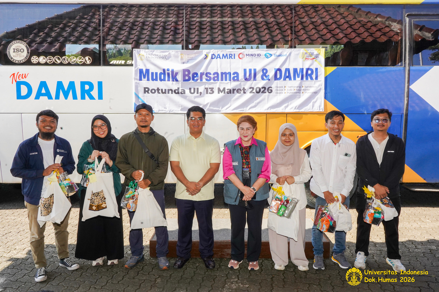 Melalui program “Mudik Bersama UI–DAMRI 2026” (1447 Hijriah), sebanyak 91 pemudik diberangkatkan dari kampus UI menuju berbagai kota di Pulau Jawa untuk merayakan Hari Raya Idulfitri bersama keluarga.