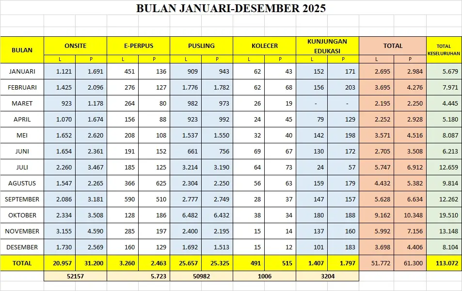 Informasi tabel data layanan Diskarpus Kota Depok naik dari tahun 2024 sebanyak 82 ribu pengunjung. (Foto: Diskarpus Depok)