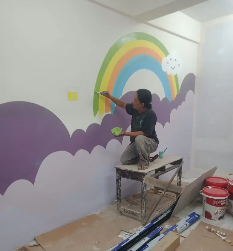 “Konsepnya sudah disiapkan oleh pihak pengguna, kami tinggal memindahkan ke dinding sesuai desain yang ada,” ungkapnya.