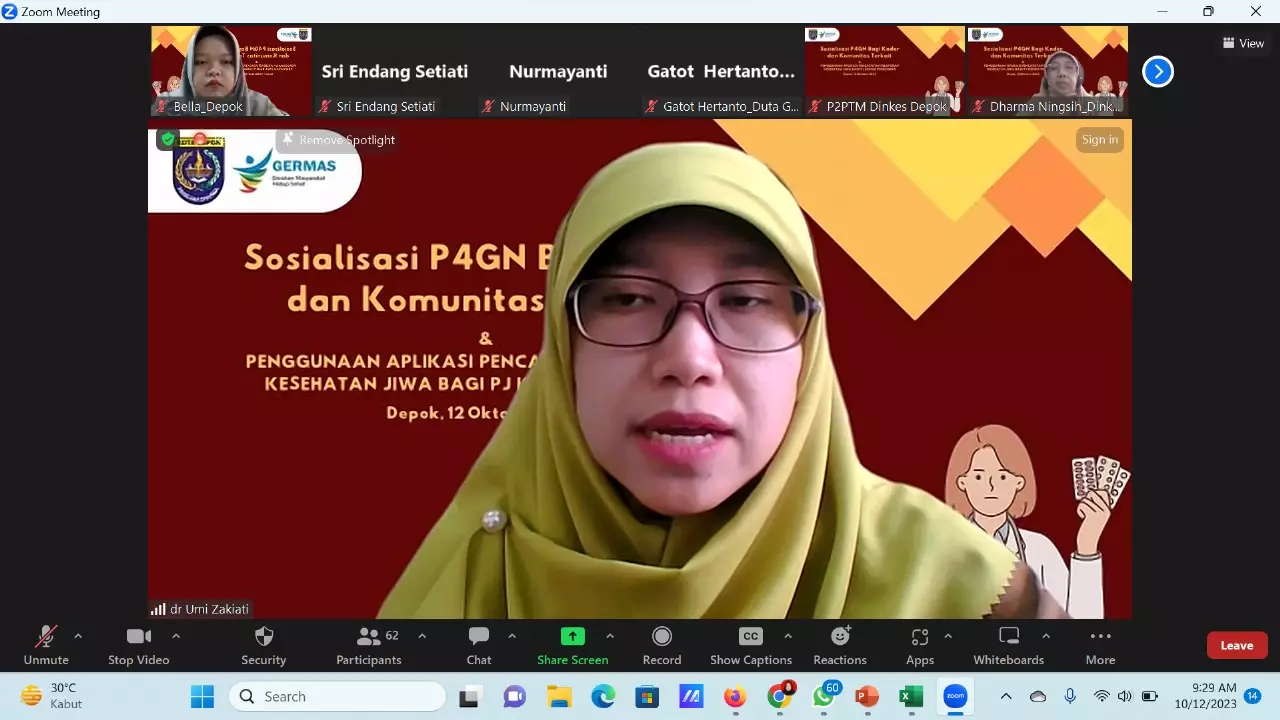 WartaDepok.com – Dinas Kesehatan (Dinkes) Kota Depok mengadakan Sosialisasi Pencegahan, Pemberantasan, Penyalahgunaan, dan Peredaran Gelap Narkoba (P4GN) secara virtual, Kamis (12/10). Kegiatan tersebut diikuti oleh kader kesehatan dan komunitas terkait se-Kota Depok.
