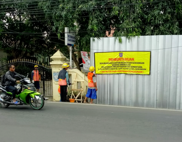 WartaDepok.com – Kantor Kecamatan Sawangan sejak awal Agustus 2019 ini pindah sementara ke Jalan Pengasinan Raya Nomor 14 RT 002/ RW 01, Kelurahan Sawangan, Kecamatan Sawangan. Hal tersebut dikarenakan kantor Kecamatan Sawangan yang berlokasi di Jalan Raya Muchtar Nomor 91, Sawangan itu sedang direnovasi seluruhnya.