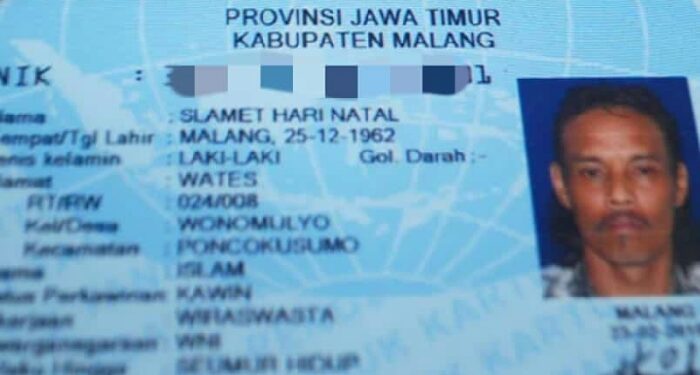 WartaDepok.com – Pria di Kabupaten Malang, Jawa Timur, memiliki nama asli Slamet Hari Natal dan kerap dipanggil Slamet Yesus. Nama itu disematkan oleh kedua orang tuanya dengan alasan agar mudah diingat, selain karena memang kelahirannya tepat saat perayaan Hari Natal, 25 Desember.