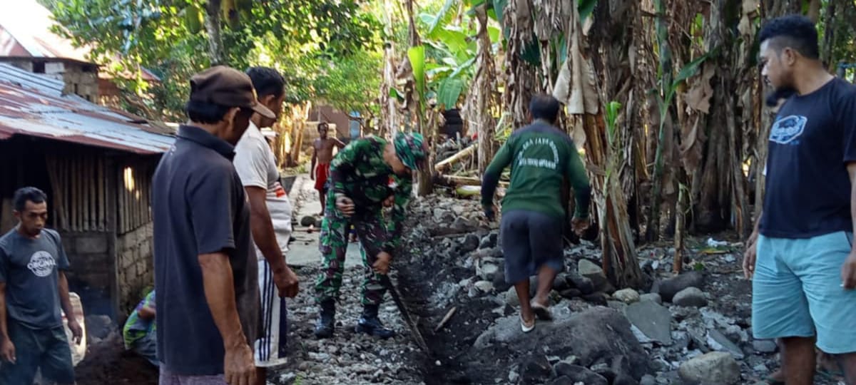 WartaDepok.com – Sebelum dibukanya TMMD ke 111 Kodim 1501/Ternate di Kecamatan Pulau Moti Kota Ternate, Babinsa Koramil 02/P. Hiri bersama warga masyarakat bergotong royong, hingga H + 11 saat ini pada tahap melanjutkan pembuatan fondasi dan pemasangan tiang besi dan slop pagar Masjid serta melanjutkan fondasi jalan