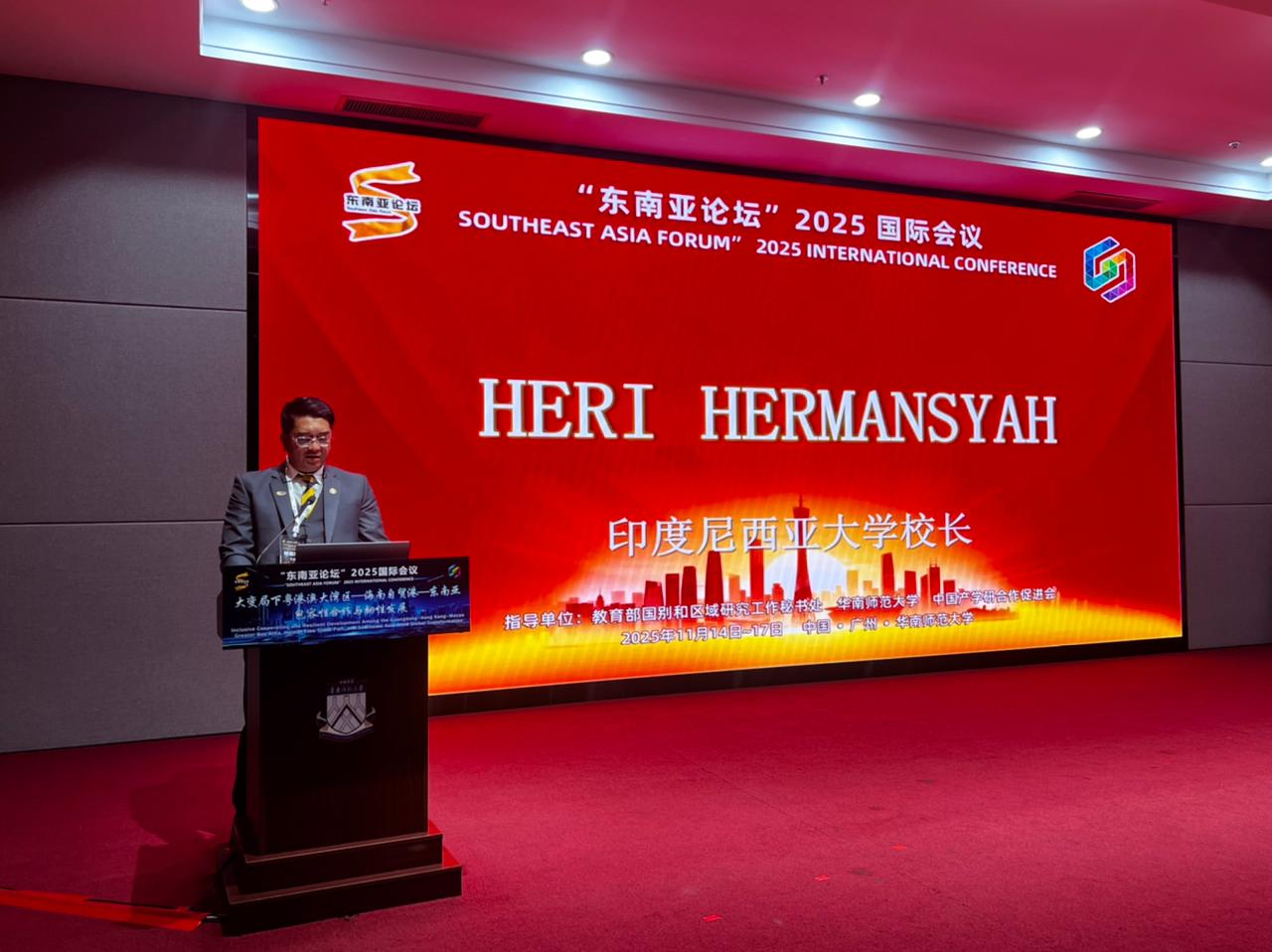 WartaDepok.com – Rektor Universitas Indonesia (UI), Prof. Dr. Ir. Heri Hermansyah, S.T., M.Eng., IPU, hadir sebagai pembicara pembuka dalam Southeast Asia Forum 2025. Konferensi internasional yang berlangsung pada 15–16 November 2025, di Guangzhou, Tiongkok ini diselenggarakan South China Normal University (SCNU) bekerja sama dengan Guangdong International Cultural Exchange Centre dan Cross-Strait, Hong Kong and Macao Collaborative Innovation Alliance.