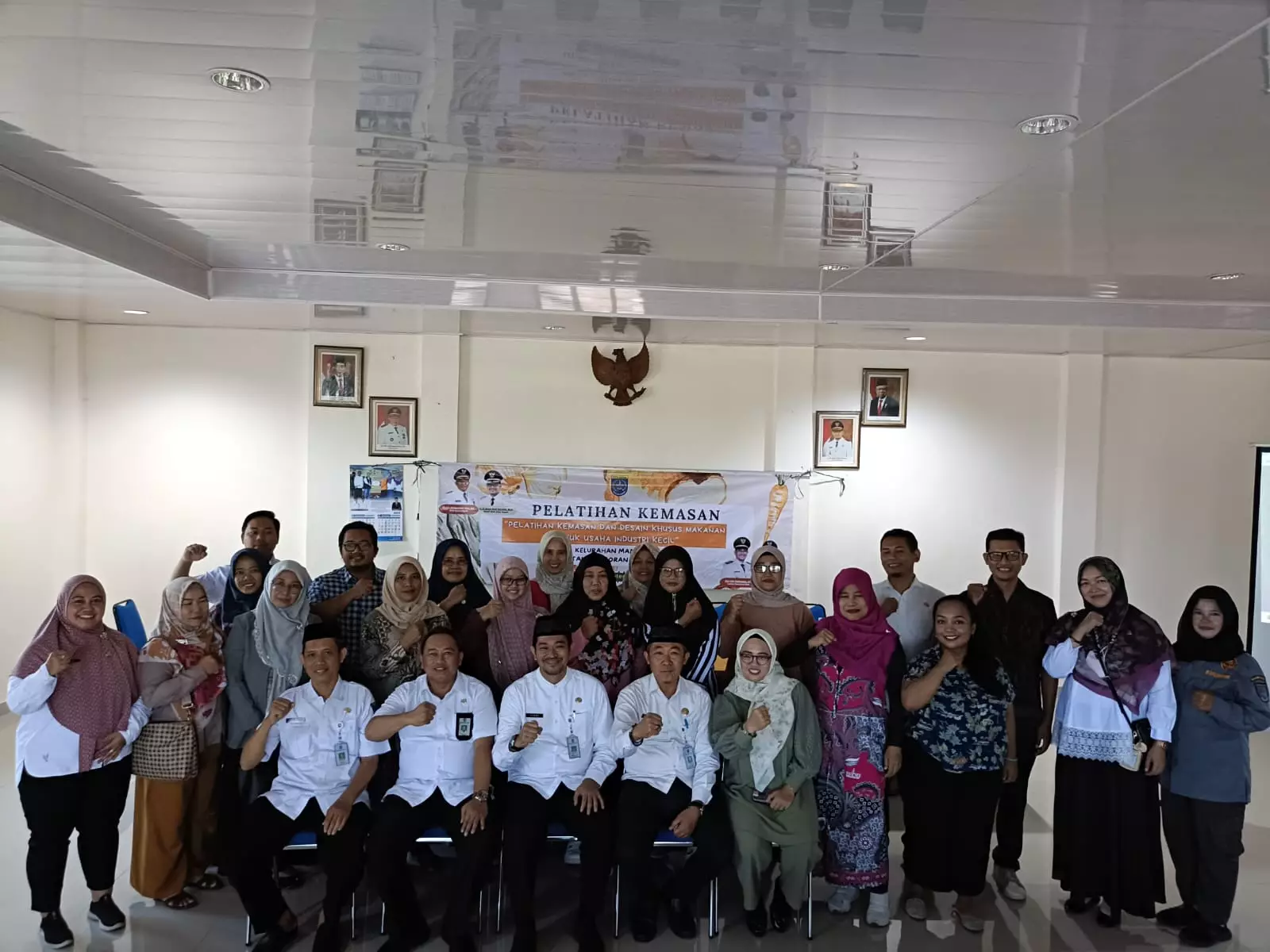 Camat Pancoran Mas, Zikri Dwi Darmawan bersama lurah, narasumber dan peserta pelatihan kemasan. (Dok. Aparatur Kelurahan Mampang)