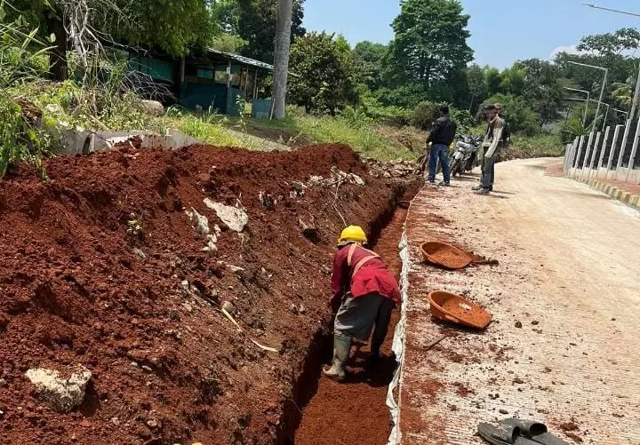 WartaDepok.com – Dinas Pekerjaan Umum dan Penataan Ruang (DPUPR) Kota Depok sedang menata drainase jalan masuk Taman Alun-alun dan Hutan Kota Wilayah Barat (Albar) di Kecamatan Sawangan-Bojongsari. Adapun, panjang drainase yang ditata yaitu 415 meter.