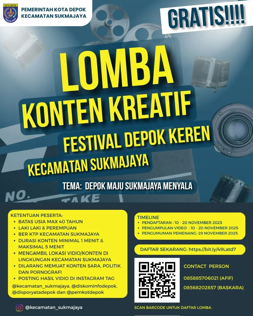 Kegiatan yang mengusung tema “Depok Maju Sukmajaya Menyala” ini dibuka pendaftaran mulai 10 sampai 20 November 2025.