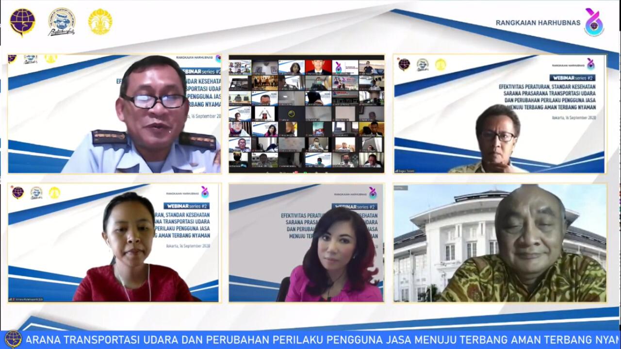 Pada kajian pertama, yaitu “Efektivitas Regulasi Penerbangan pada Masa Pandemi COVID-19”, *Krisna Puji Rahmayanti, S.I.A., M.P.A*, akademisi dari Fakultas Ilmu Administrasi UI, menuturkan, “Peraturan perundang-undangan perlu memperhatikan nilai keadilan bagi stakeholders. Perlu diterapkan mitigasi risiko setiap melakukan perpanjangan penerapan kebijakan pembatasan atau syarat tambahan pada perjalanan udara.